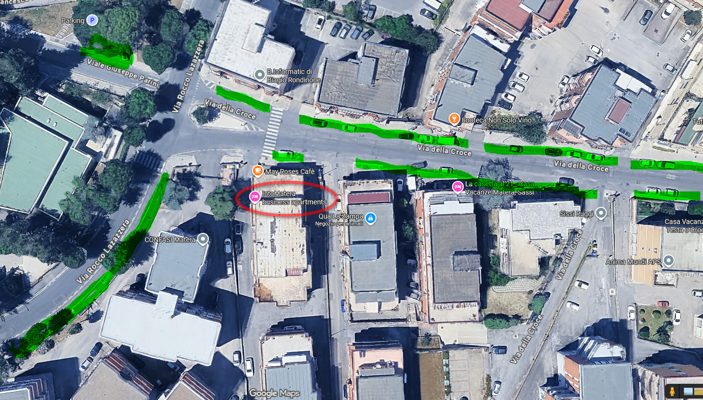 Di seguito evidenziati in verde le zone di parcheggio libere nelle strade circostanti